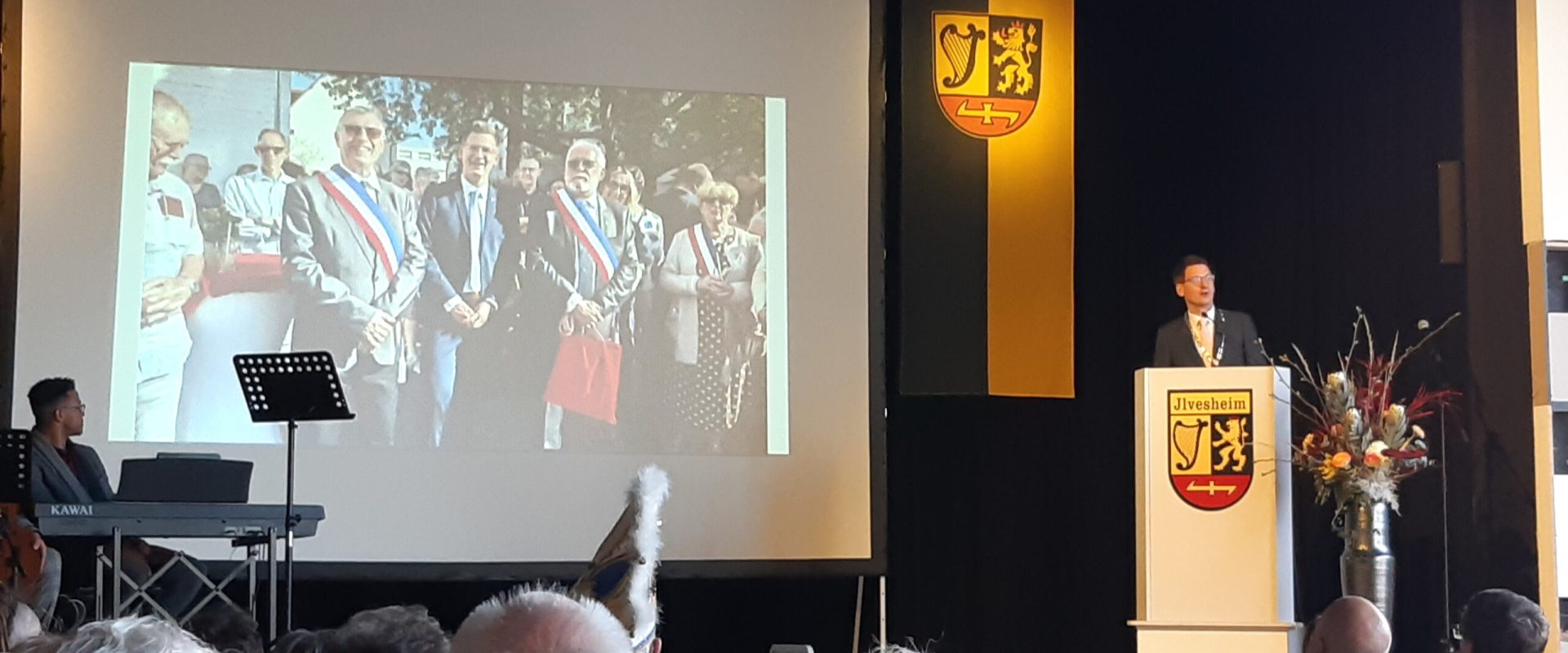 «Bonne Année», wie es in Frankreich heißt, wünschen wir allen und freuen uns auf die kommenden Partnerschaftsaktivitäten, wie auch eine Reise nach Chécy am Himmelfahrtswochenende 2025. Am 6. Januar beim Neujahrsempfang der Gemeinde Ilvesheim war das Partnerschaftsjubiläum ein Teil des Rückblicks auf 2024. Mit dem Film zum 30-jährigen Jubiläum war auch ein Gruß aus Chécy im offiziellen Programm vertreten. Darin beschreiben drei „Ur­gesteine“ der Jumelage in Chécy ihre Erfah­rungen, Hoff­nun­gen und Wünsche. Vielen Dank an Bürger­meister Thorsten Wal­ther, dass er diesen freund­schaftlichen Blick auf 30 Jahre Städte­part­ner­schaft ins Pro­gramm genommen hat. Danke auch an die kleine Band „The Vivace Brothers“ aus Schriesheim, die den Neujahrsempfang stilvoll und peppig zugleich umrahmt hat.
